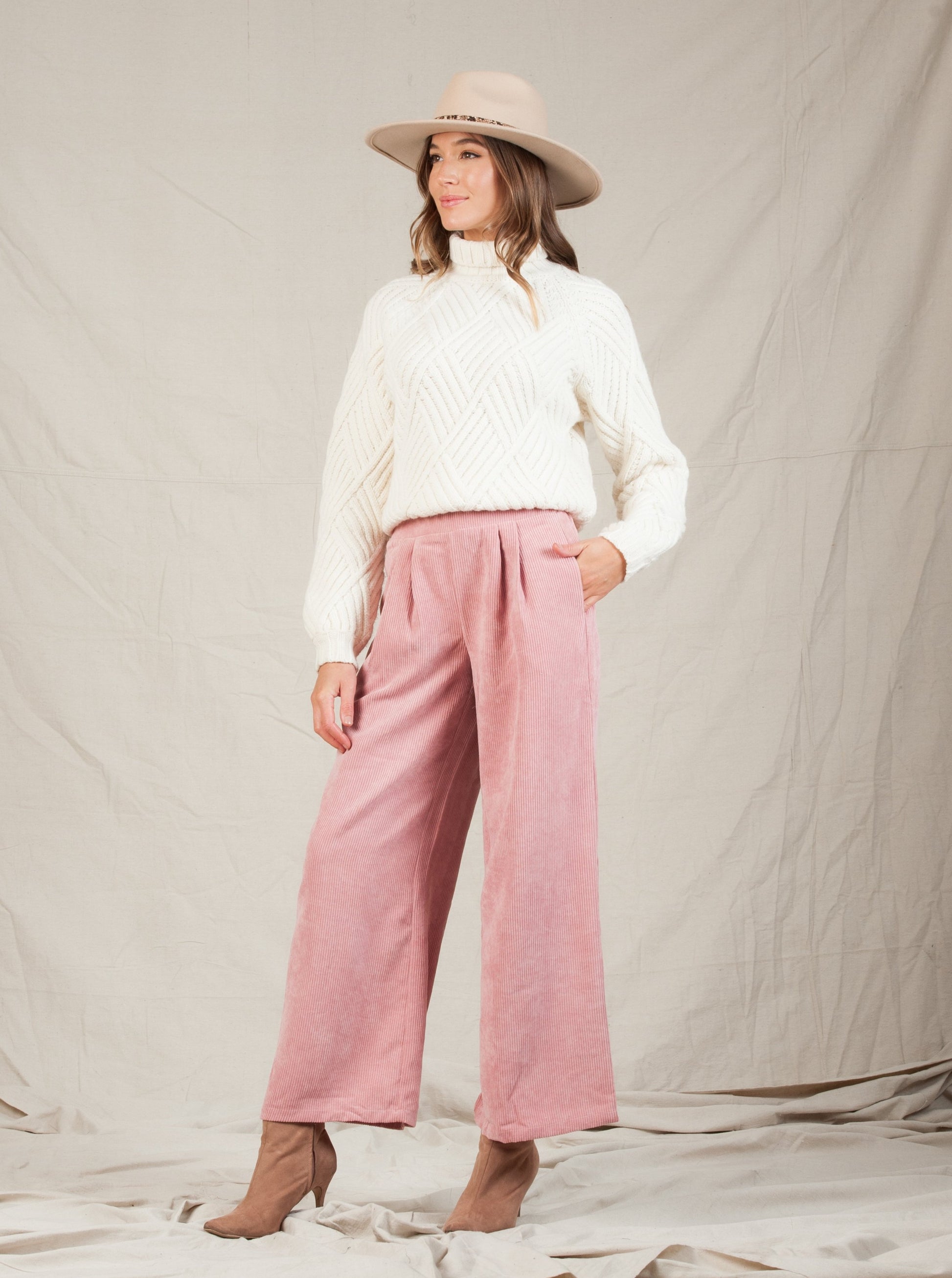 RETSINA CORDUROY PANTS-DUSTY PINK