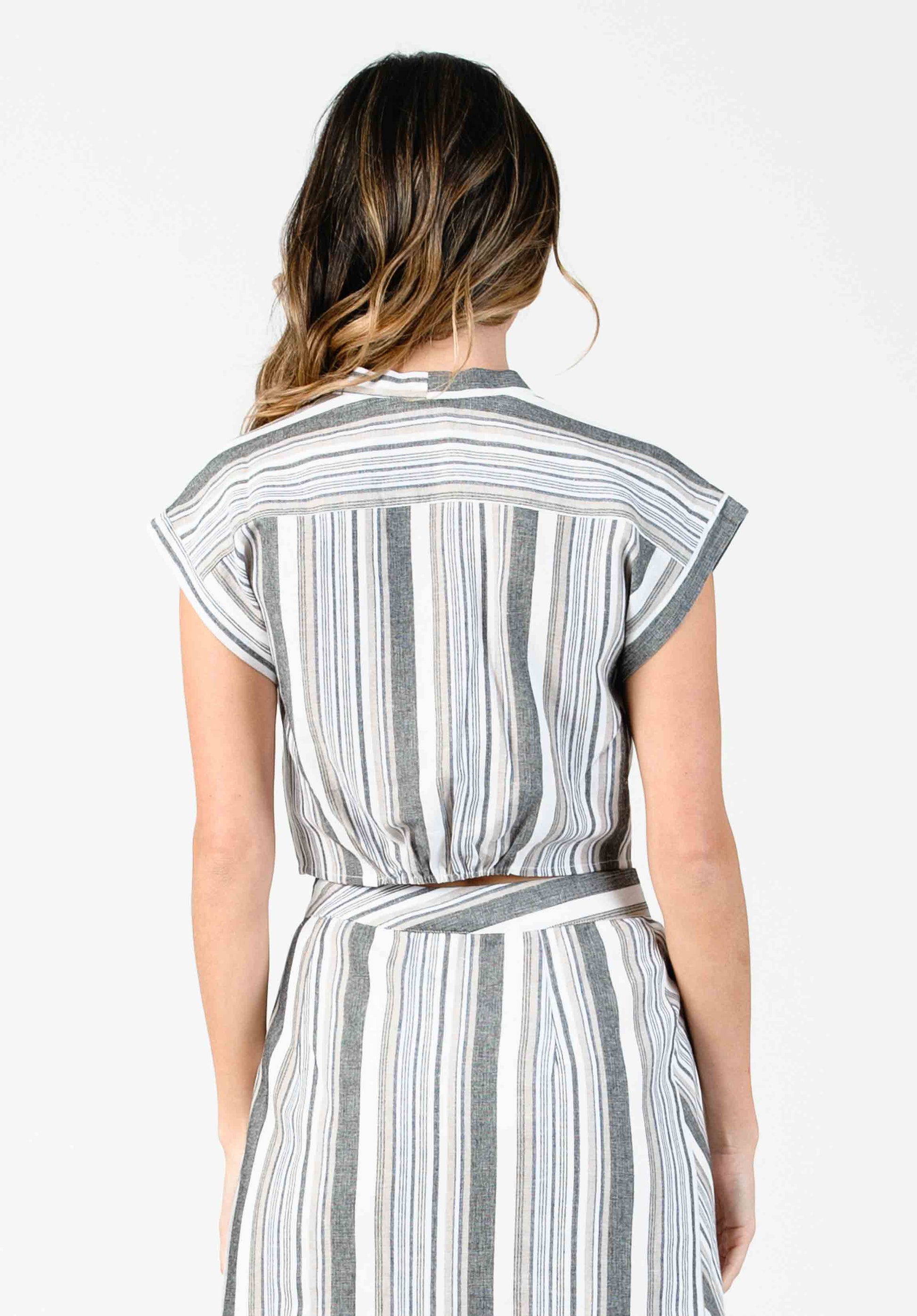 SONORAN TIE FRONT CROP TOP-NAVY / WHITE STRIPE